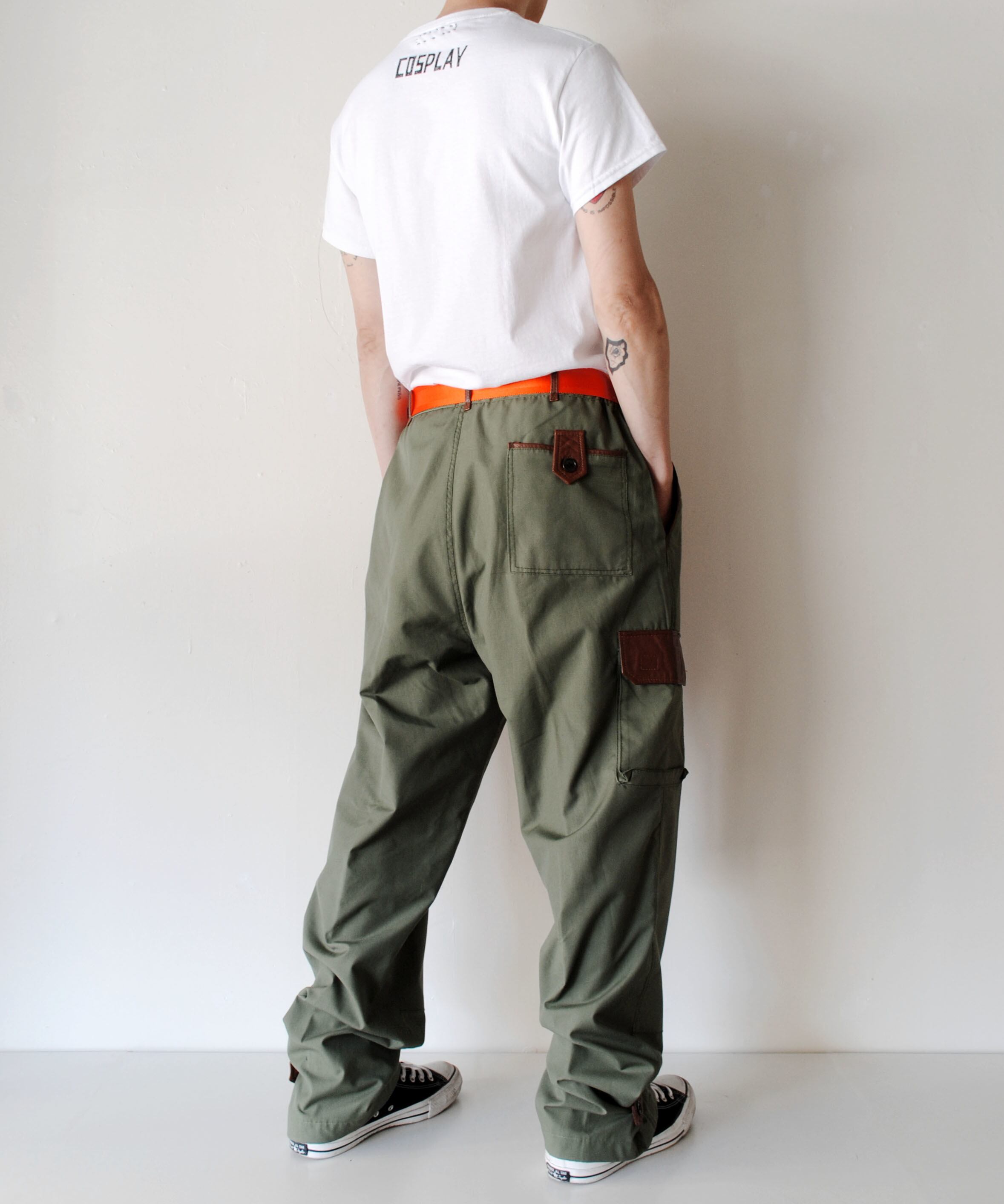 ビンテージのワークパンツ。表記はございませんが、おそらくスウェーデン製のものになります。ベルトループ、フラップ、ポケットのトリミングがレザーで出来ています。ファスナーはアルバート社製の物を使用しております。デザイン、機能性も良い一本です。ほぼデットに近い状態で、状態も非常に良いです。