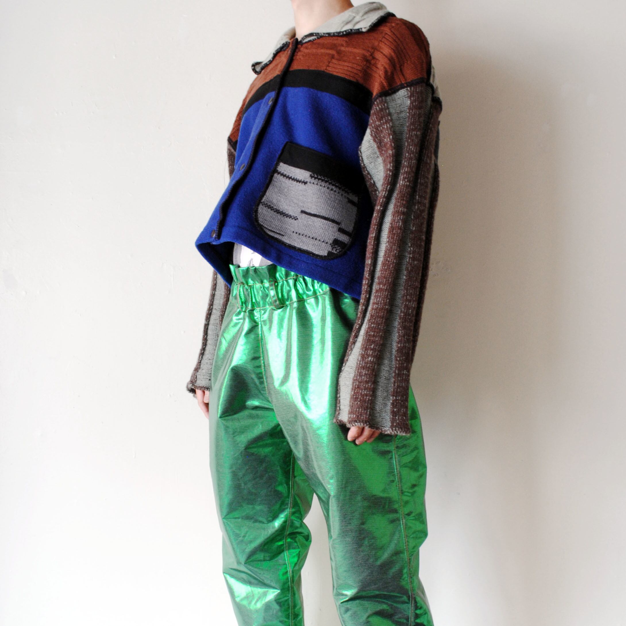 希少な80年代のショート丈ジャケット。様々な織りのニットと、ウール素材を組み合わせた手の込んだ一着です。状態も非常に良い美品です。