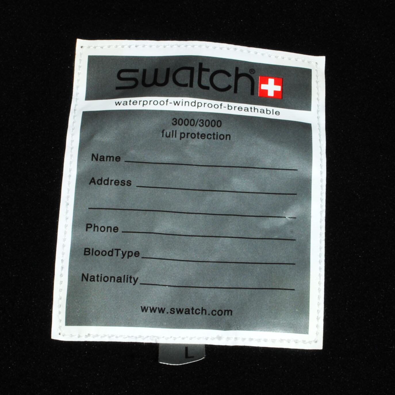 スイスの時計メーカー『SWATCH』のユーロ企画のスキージャケット。デットストックです。防水・防風の本格使用です。ライナーのフリース生地、フード部分はファスナーで取り外し可能です。