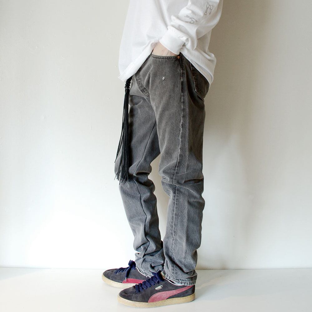 ユーズドのLevi's 501を解体しテーパーに再構築し、インシームにリフレクター素材を使用しております。サイズは古着のため実寸をご参考ください。