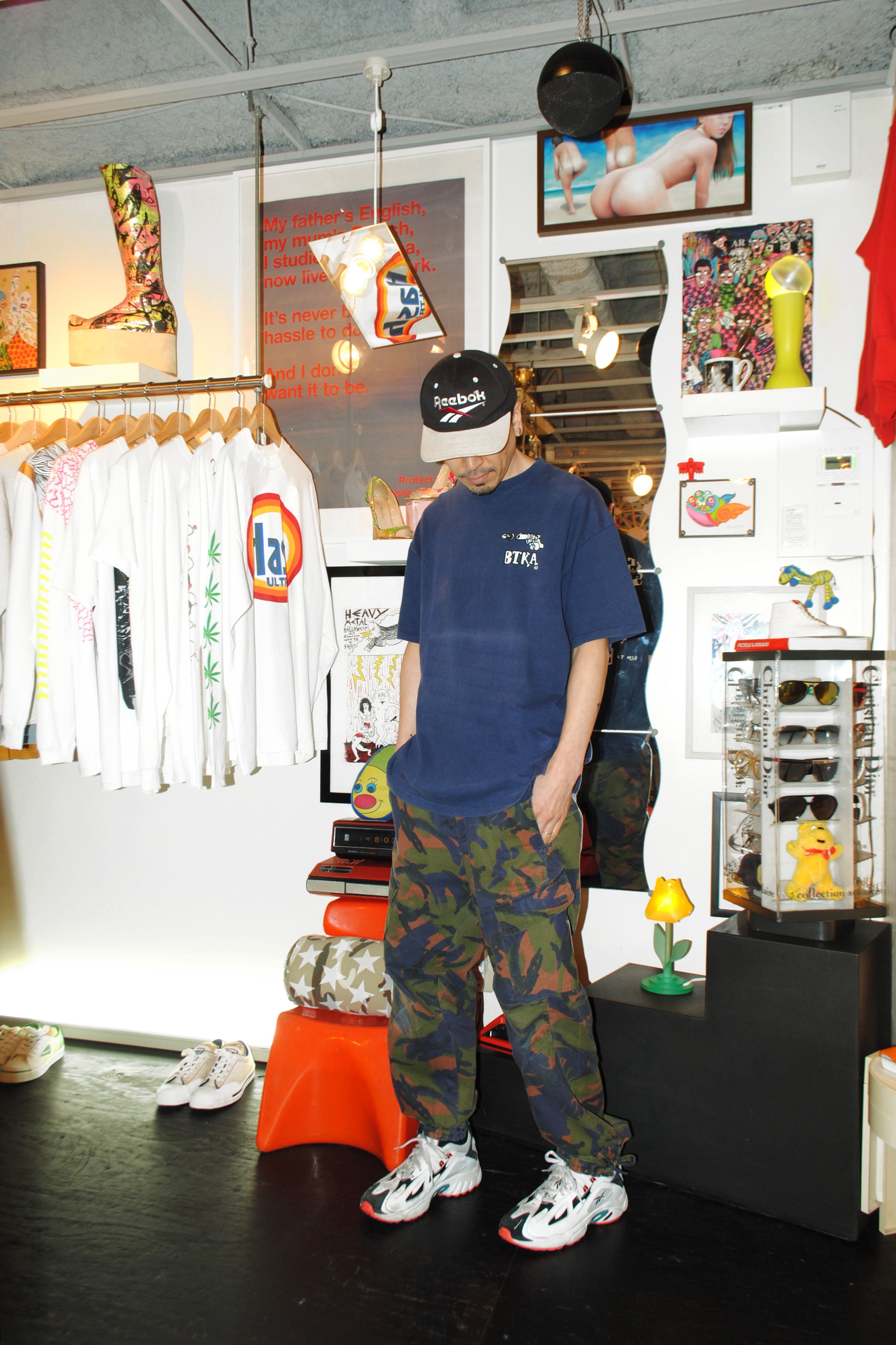 ビンテージのTシャツ。写真の最後は1995年のi-Dでの広告です。