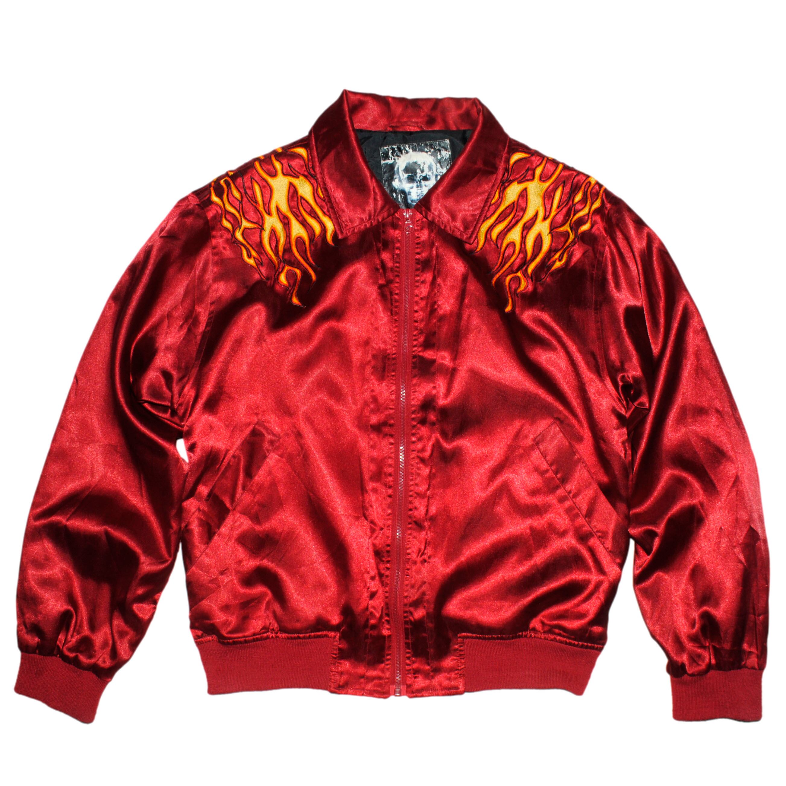 90-00s Fire embroidering satin jacket